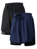 MANSENHUG Mens 2 in 1 Running Shorts Quick Dry Athletic Shorts with Liner, Workout Shorts with Zip Pockets and Towel Loop